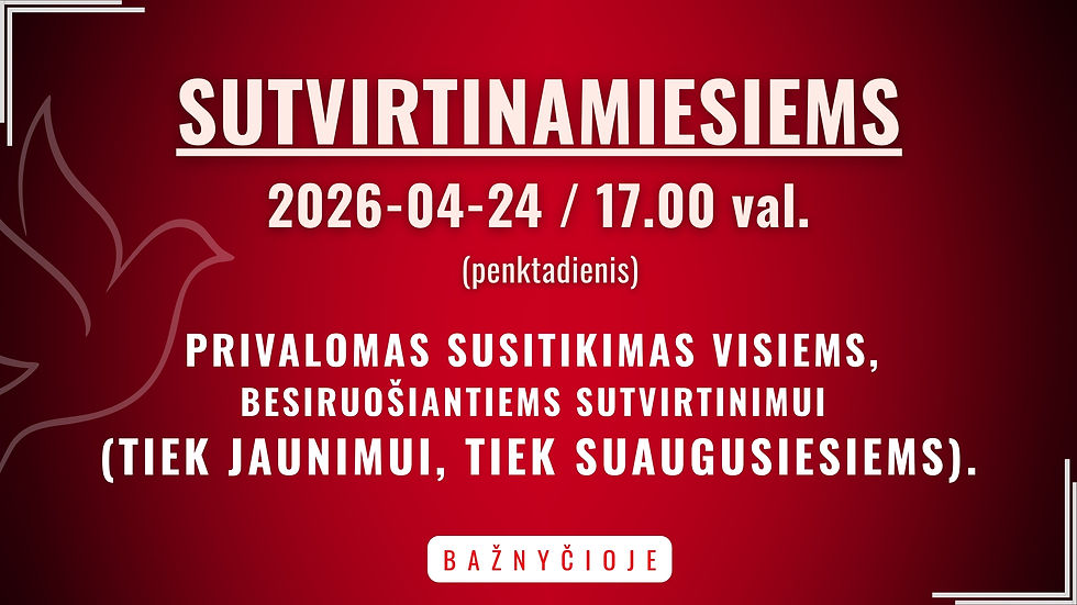 17.00 val. – privalomas susitikimas visiems, kurie priims Sutvirtinimo sakramentą
